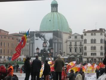 coming into venice is a torturous game of delayed gratification. there's a train station labeled "venice" that isn't actually venice. then you go through this area of boring suburbia, then it changes to outskirts-of-Florida-type near-swamp, then a minute of forest ... and then ... what's this? ... we're on a bridge. and there's water below. is this a causeway? are we finally getting there? wait, there's an island! nope ... not venice. ok ... there's an island ...